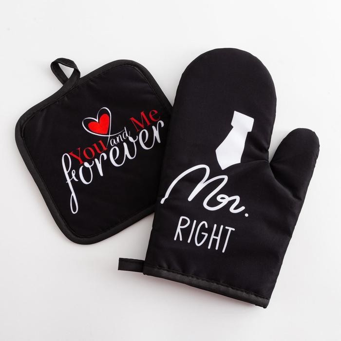 Кухонный набор (2 предмета) Доляна Mr right, прихватка 17×17 см, рукавичка 26×16 см, 100% п/э