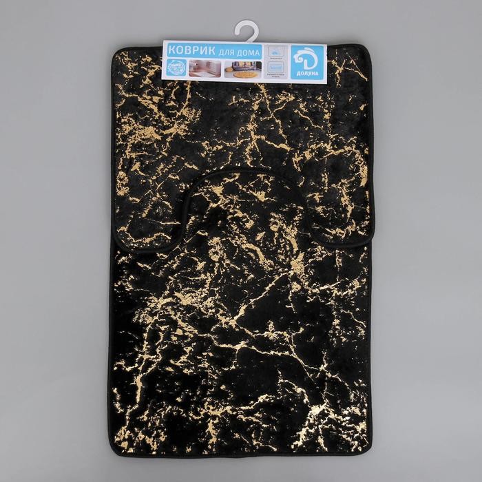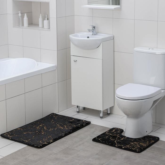 Набор ковриков для ванны и туалета Доляна «Мрамор», 2 шт: 40×50, 50×80 см, цвет чёрный
