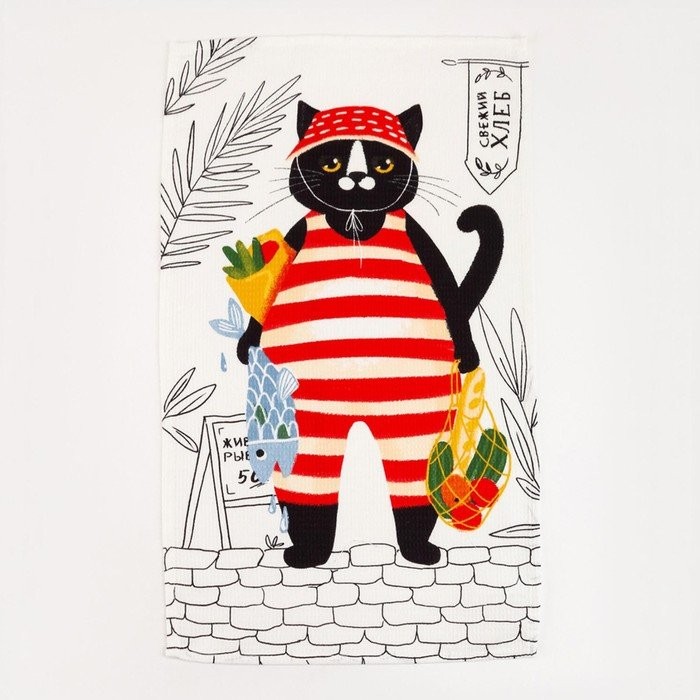 Набор кухонных полотенец Доляна «Котик на кухне» 35х60см-2шт, 100% хл