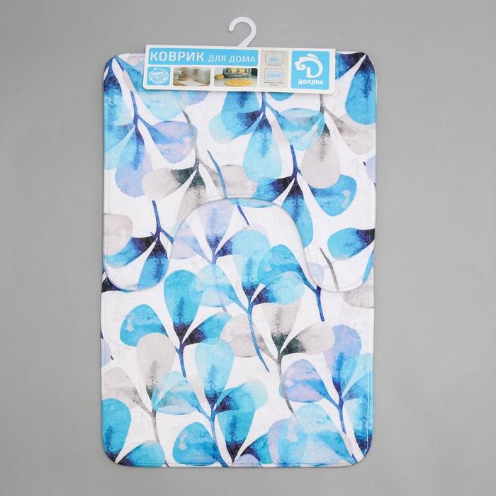 Набор ковриков для ванны и туалета Доляна «Шелла», 2 шт: 45×70, 39×45 см, цвет бело-синий