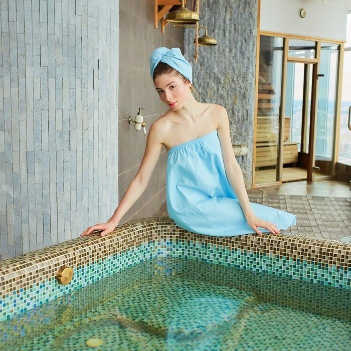 Набор для бани Spa day жен.парео 80×150±4 см, чалма, 100% хл., ваф.полотно, голубой
